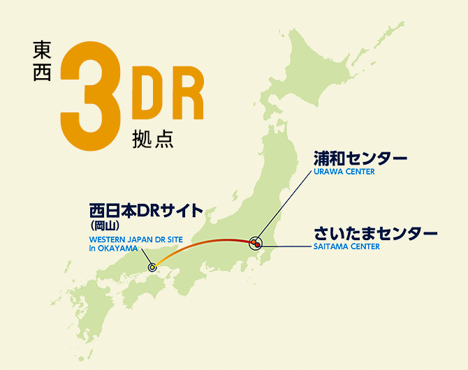 拠点を東西に設置しており、DR環境を整えることが可能です。