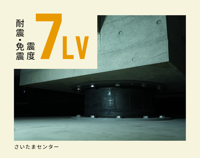 震災の影響を受けにくい強固な地盤と、洪水による水害の危険性が少ない立地に建つ「さいたまiDC」は、震度7レベルに対応した最新のビル免震導入、即時起動型非常用発電システムなど、高い安全性を確保したデータセンターです。